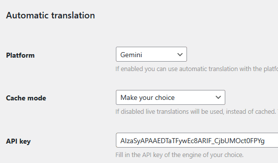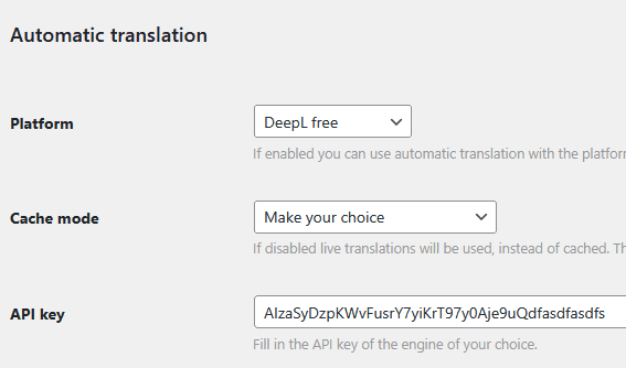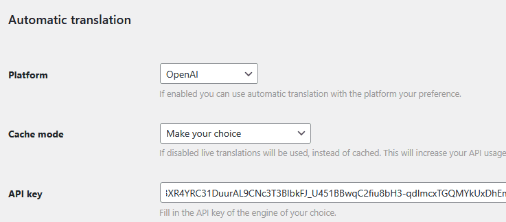 Ga daarna naar de wpMula-instellingen en voeg hier de API-sleutel toe. Vervolgens kun je automatische vertalingen inschakelen via Sitebeheer.