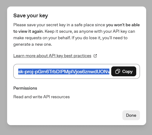 Kopieer vervolgens de API-sleutel nadat je deze hebt aangemaakt.